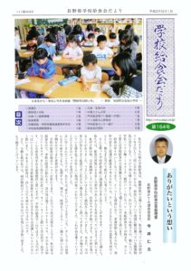 | 第166号 | 2011年07月 | ・巻頭言 ・平成23年度役員名簿 ・平成23年度事業内容 ・給食雑感 ・組織変更 ・各課・各事務所から ・児童・生徒の声 ・栄養士さんの窓 ・新規採用学校栄養職員の抱負 ・学校給食センター紹介 ・給食会日誌抄 |